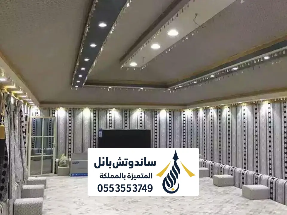 تشطيب الجدران الداخلية في بيت الشعر الملكي يلعب دورًا كبيرًا في إبراز الفخامة. ومن أبرز الخيارات المستخدمة في الخرج: